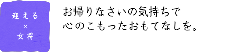 皆様のお越しを心よりお待ち申し上げます。 女将